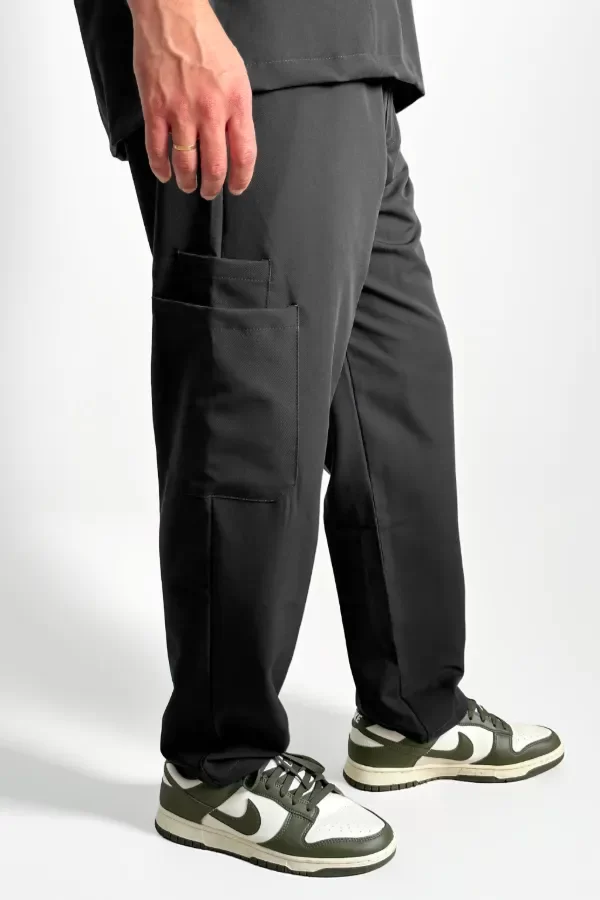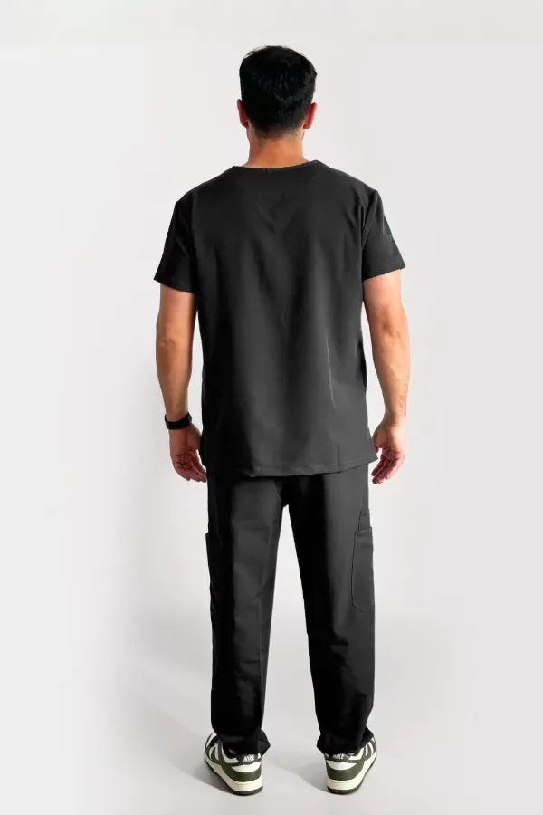 Pantalón: El pantalón es recto, con elastico en toda la cintura. Además tiene un monton de bolsillos! 7 en total: 2 en los laterales, 2 en la parte trasera y tres en los costados, para guardar de todo! El calce y la comodidad es increible, lo vas a querer usar hasta fuera del trabajo!