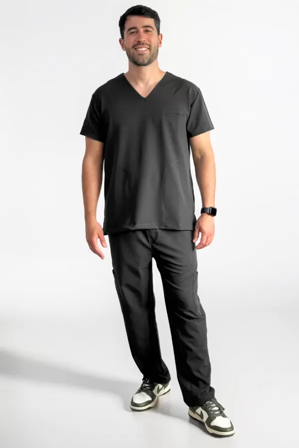 Chaqueta: Cuello escote V, con dos bolsillos laterales súper amplios para guardar lo que necesites (celu, llaves, lapiceras), y uno en el pecho con ranura especial para lapiceras. Amplia y flexible para que que puedas moverte con total libertad durante toda la jornada laboral.
