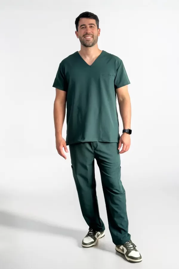 Chaqueta: Cuello escote V, con dos bolsillos laterales súper amplios para guardar lo que necesites (celu, llaves, lapiceras), y uno en el pecho con ranura especial para lapiceras. Amplia y flexible para que que puedas moverte con total libertad durante toda la jornada laboral.