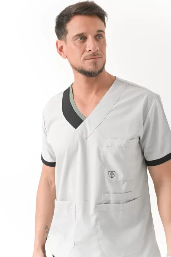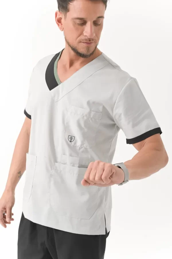 Bolsillo triple (tipo chef) muy amplios y cómodos con abrojo en el bolsillo medio ideales para colocar libretas clínicas, estetoscopio o celulares.