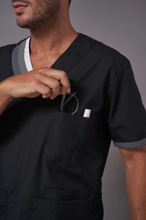 Bolsillo triple (tipo chef) muy amplios y cómodos con abrojo en el bolsillo medio ideales para colocar libretas clínicas, estetoscopio o celulares.