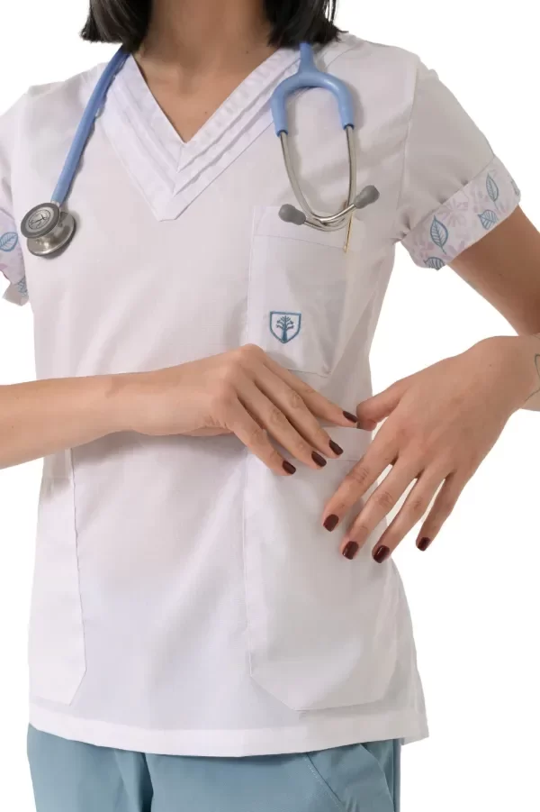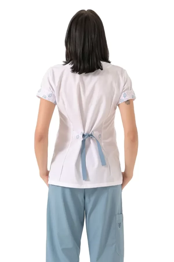Chaqueta modelo ambo escote en V con pliegues planos sostenidos por una costura que forman lo que se denomina alforzas.