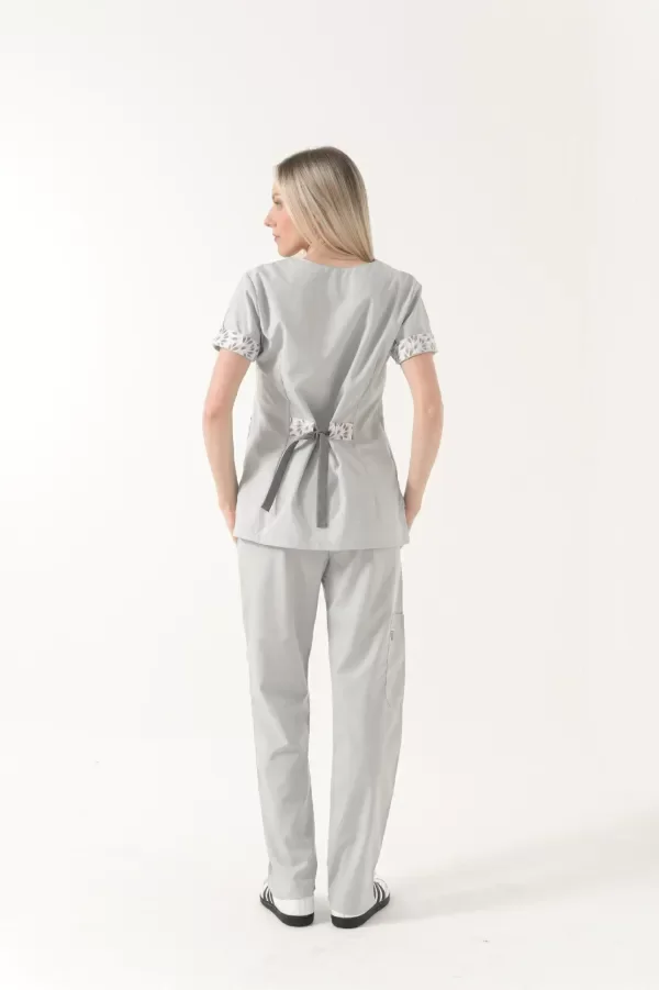 Chaqueta modelo ambo escote en V con pliegues planos sostenidos por una costura que forman lo que se denomina alforzas.