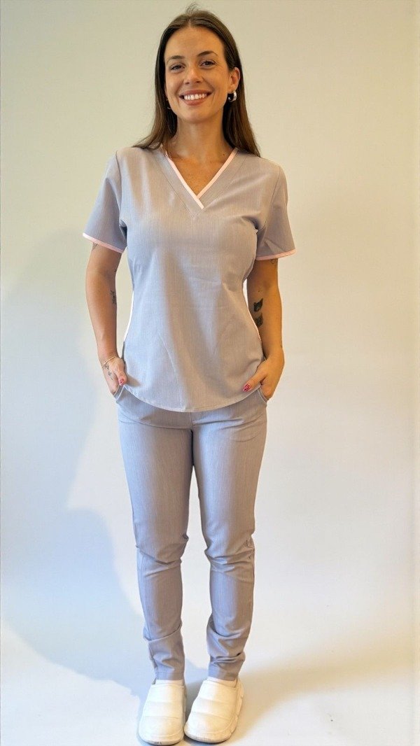 AMBO SPANDEX RACHEL (SOFTSPANDEX) Gris Perla C/ Rosa